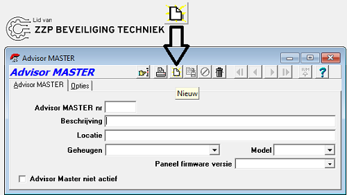 10. Ga naar het tabblad “ADVISOR MASTER” en klik op het plusje (+). Selecteer de centrale die je net hebt aangemaakt en klik op “Ok“.